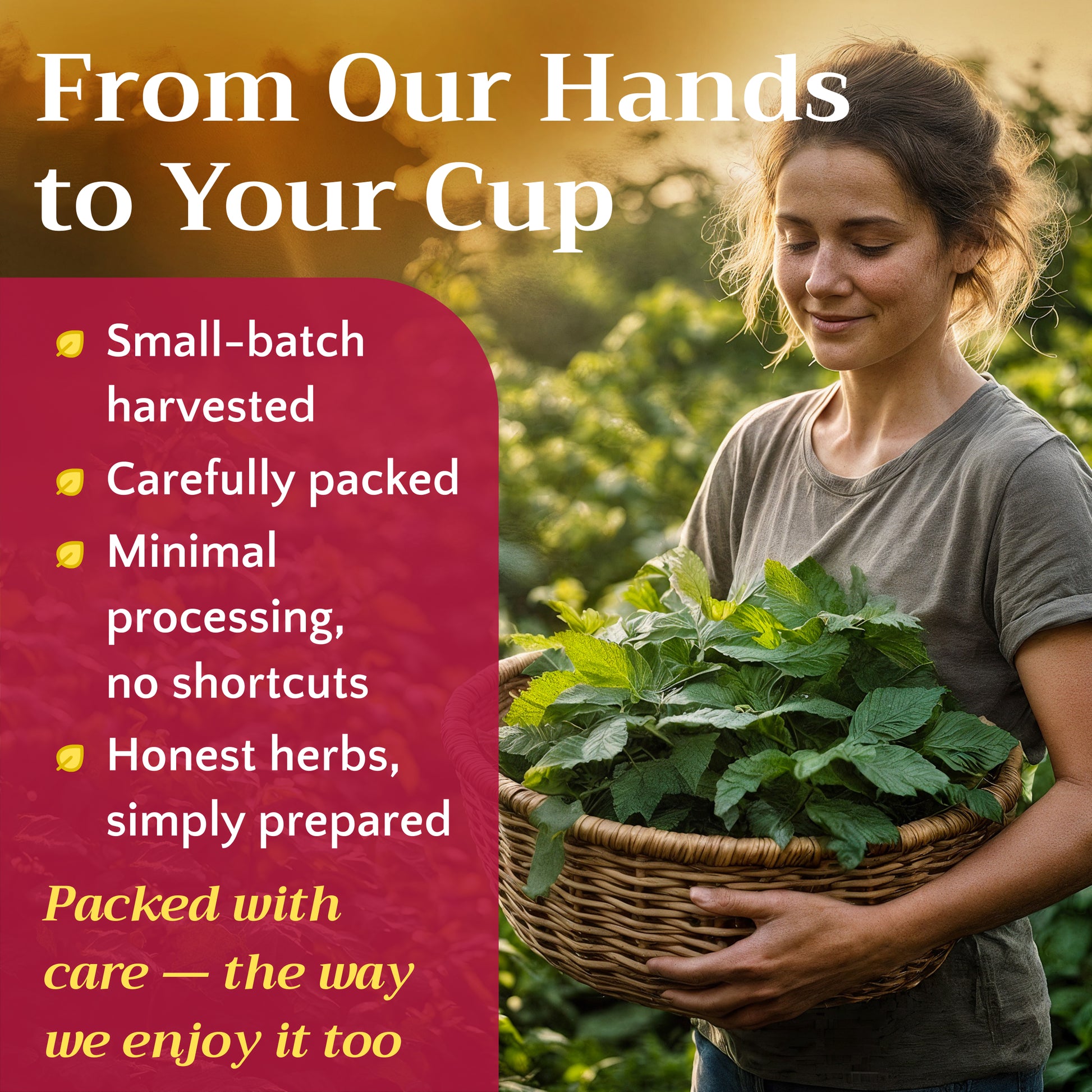 Suitable for herbal infusions and traditional botanical use. Known for its mild, slightly fruity and earthy flavor with subtle astringency.